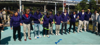 首个重磅项目——“十人九足一圈到底”协同赛,将赛事推向了第一个高潮。这是一个极其考验团队协调性与统一性的复合型项目,要求十名队员不仅要用绑带将相邻的腿两两绑住,形成“十人九条腿”的奇特模式协同前行,还需在到达终点后共同协作,让一个呼啦圈穿过所有人的身体,完成“一圈到底”。